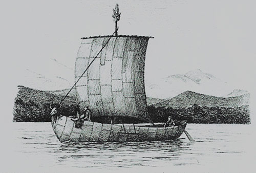 A cette même époque, des moines évangélisateurs quittent la Cornouaille sur de frêles esquifs, les curraghs. Portés par les courants et les vents dominants, ils débarquent dans la baie de Saint-Brieuc.