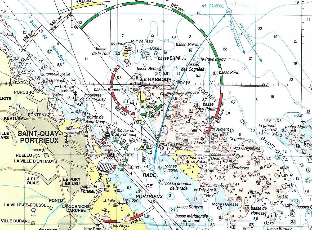 Dans la Baie de Saint-Brieuc, à part le feu du cap Fréhel, aucun éclairage n’existait. Harbour sera le premier « éclairage » de la baie en 1850. Quelques années plus tard, en 1853, des feux de port furent allumés au Portrieux et à Binic. Le phare du Grand Léjon fut mis en service en 1881.