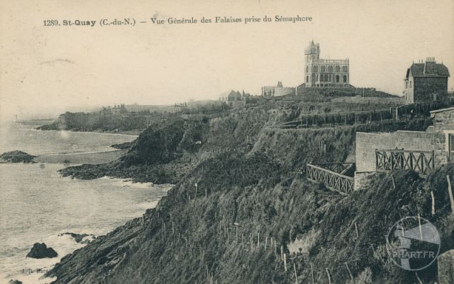 Vers 1880, la Villa Kermor se dresse fièrement au bord de la falaise. Elle est une des premières maisons de villégiature à Saint-Quay-Portrieux. C’est une construction de forme rectangulaire, en granite et schiste, avec un étage de soubassement, un rez-de chaussée surélevé et un étage couvert d’une toiture-terrasse dominée côté mer par une tour polygonale coiffée d’un bulbe en zinc.