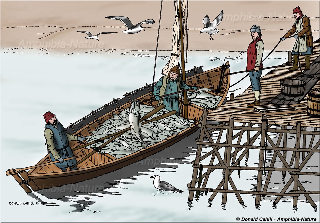La grande qualité de ce poisson, la possibilité de le conserver salé et séché et de le transporter jusque dans des régions lointaines, l’huile qu’on pouvait extraire de son foie en ont fait une ressource extrêmement attractive qui attiré les pêcheurs européens dès le 15e siècle. Ainsi ils n’ont pas hésité à traverser les océans, vers Terre-Neuve, les Grands bancs ou L’Islande, pour rapporter au pays cette précieuse nourriture.