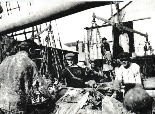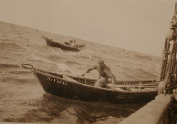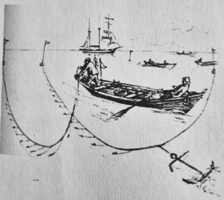 Elle s’est d’abord effectuée depuis le bord du bateau. Le navire, sous voilure réduite, se laissait dériver et chaque pêcheur (installés dans des 1/2 tonneaux placés derrière le bastingage) laissait filer des lignes.