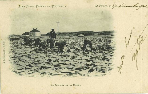 Dans la deuxième partie du 19e siècle on ne pêchait plus que sur les bancs. L’archipel de Saint-Pierre et Miquelon, demeuré français, était devenu un point de passage obligé pour le ravitaillement, les soins médicaux, le courrier… mais aussi pour refaire provision de sel et de boëtte (appâts) avant de repartir pour la deuxième pêche. La morue débarquée pouvait être séchée sur les graves de Saint-Pierre et transformée en morue sèche, travail dévolu à des jeunes garçons de l’arrière-pays breton, les « graviers » qui l’accomplissaient dans des conditions proches de l’esclavage. Les navires pourraient aussi ramener directement leur cargaison en France pour y être séchée. Au début du 20e siècle, la morue verte était traitée dans des sécheries mécaniques installées dans les grands ports de débarquement.