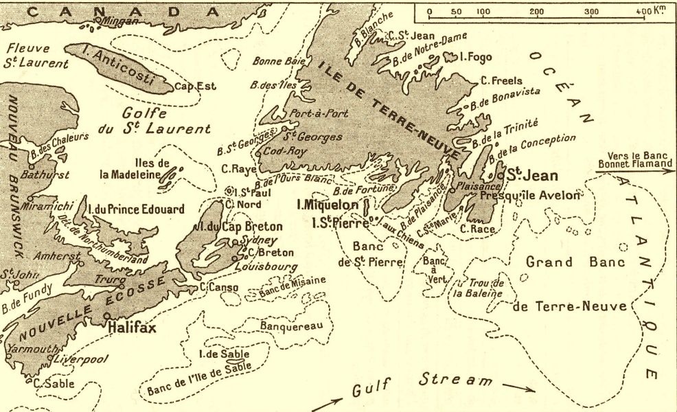 Pourquoi ce nom de : « les bancs » ? Il s’agit d’un ensemble de plateaux sous-marins au sud-est de Terre-Neuve, au confluent du Gulf Stream et du courant du Labrador. Leur profondeur pour la plupart entre 50 et 100 mètres et les nutriments rapportés par les courants en font une zone propice à toute la vie animale, et donc à la pêche.