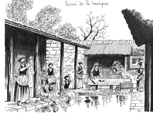 Restés en usage jusqu’au milieu du 20e siècle, les lavoirs étaient fréquentés par une population essentiellement féminine. Puis leur utilisation s’est perdue avec l’eau courante, les lessiveuses, les laveries industrielles et automatiques et enfin les machines à laver domestiques…