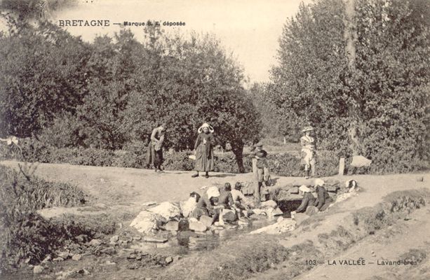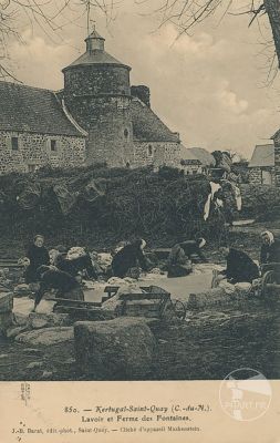 Les nombreux lavoirs étaient fréquentés par les « laveuses » (femmes qui en faisaient profession) de Saint-Quay-Portrieux qui travaillaient pour les familles, les hôtels et pour leur propre compte. Certains lavoirs étaient très rudimentaires, simple alignement de pierres autour d’une mare ou le long d’un cours d’eau, d’autres plus aménagés comme celui-ci.
